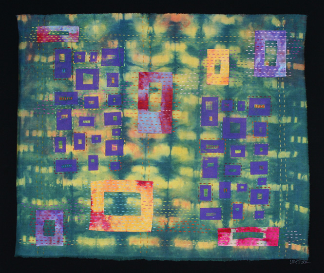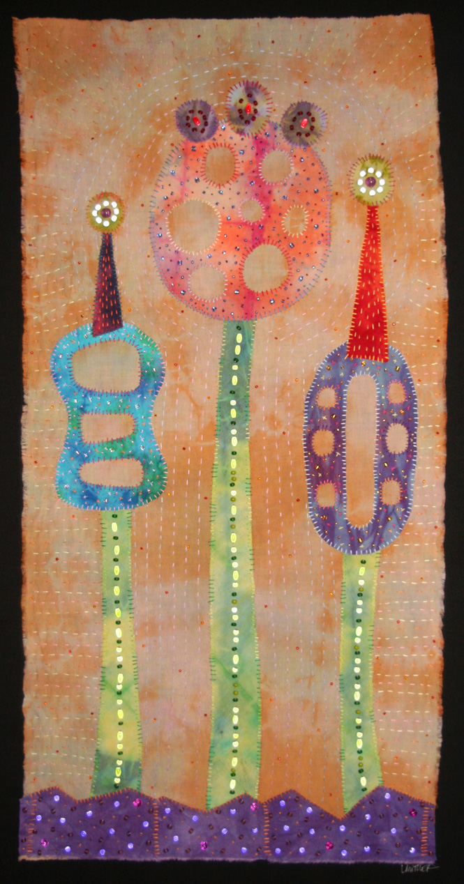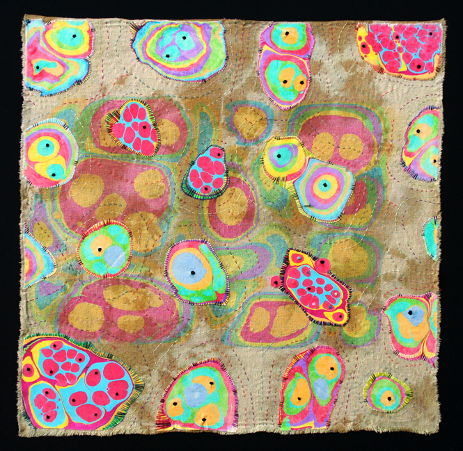 With several degrees under her belt, her background and artistic training is extensive and diverse, which helps to explain how she can embrace such an array of varied artistic mediums including fabric, film and metal, just to name a few. She has dubbed herself a fiber artist, metal sculptor and photographer…but I am convinced that she is so much more. Her work embraces so many different styles and techniques, and manipulates color & energy in such a way that each completed work can’t help but draw you in.