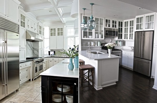 Often times people associate monochromatic with dull or emotionless. These fabulous kitchens are anything but dull, each with its own style and inviting personality. Perhaps what I love most is how a simple theme of monochromatic can be implemented in so many different and often opposite directions, whether modern, shabby, contemporary or rustic.